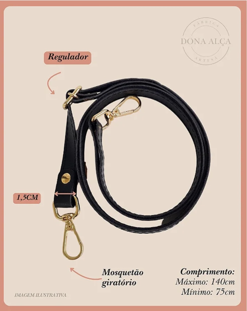 As informações referem-se à 1 unidade da alça tiracolo em material sintético com regulador para bolsa